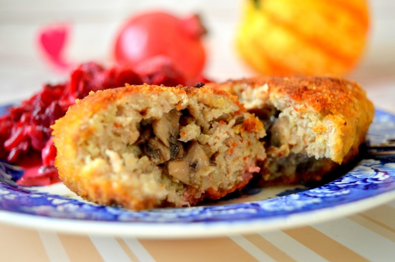 Iš faršo formuojame blyną, dedame šaukštą įdaro ir formuojame kotletukus.