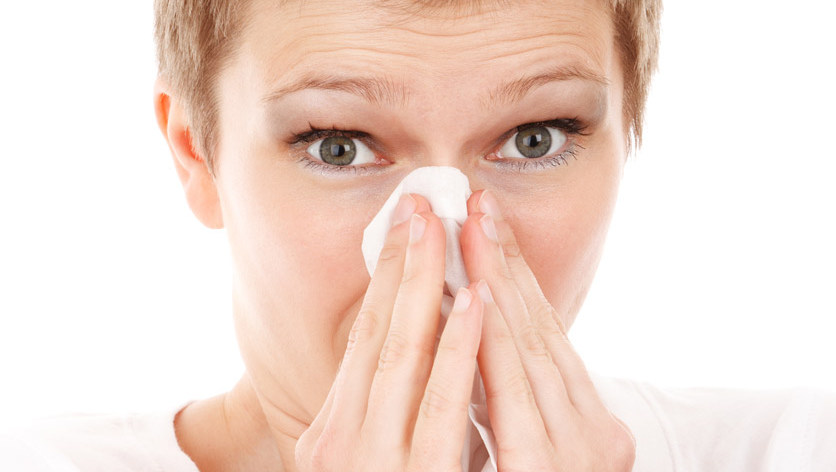 – liguista išvaizda: šilta, paraudusi oda, paraudusios ašarotos akys;