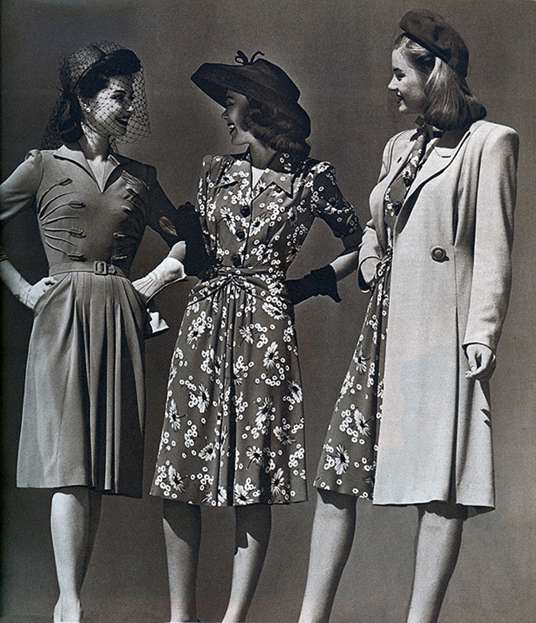 II pasaulinis karas labai paveikė moters aprangą. Dauguma moterų apsirengė karines uniformas ir tik per šventes išsitraukdavo ypatingoms progoms paslėptas gėlėtas sukneles.
