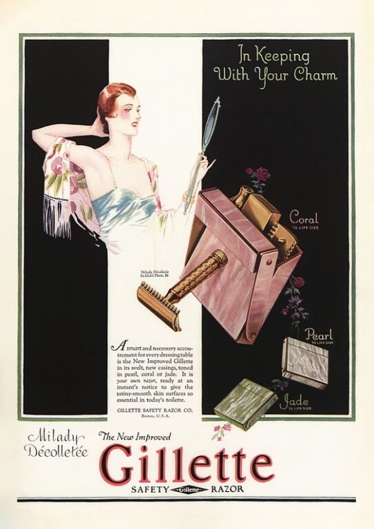 1760 m. kirpėjas Jeanas Jacques’as Perret pristatė pirmąjį vyrų skustuvą. Jis sukūrė L formos medinę skustuvo apsaugą, ji padėjo sumažinti riziką įsipjauti skutimosi metu. Nors jie buvo parduodami vyrams, skustuvus naudojo ir moterys. Dar viena plaukų šalinimo priemonė buvo išrasta, kai daktaras Gouraud 1844 m. sukūrė vieną pirmųjų depiliacinių kremų JAV, pavadintą „Poudre Subtile“. Skelbime daktaras Gouraud teigė, kad kremas „veiksmingai pašalins kiekvieną barzdos plaukelį nuo pat lūpų.“