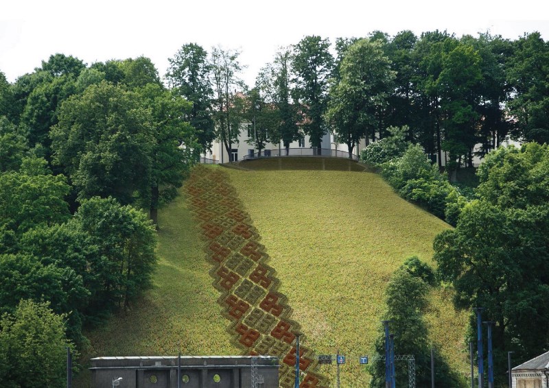 Dėmesio sulauks ir pats šlaitas. Jis bus sutvirtintas, kartu sutvarkant nuošliaužų padarytą žalą, o kalną puošiantį drugelį planuojama pakeisti spalvinga tautine juosta, sukurta iš žemaūgių dekoratyvinių krūmelių.
