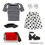 3. Derinkite dryžuotus drabužius su geometrinių raštų drabužiais (dryžiai, žirniai, rombai, langeliai). Tokie deriniai atrodo ekstravagantiškai ir labai madingai. Derindamos nepersistenkite su detalėmis, nes toks komplektas reikalauja ypač paprastų drabužių ir aksesuarų.