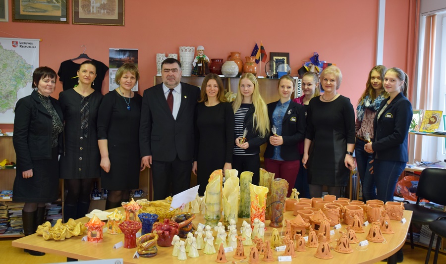 Pasak dailės mokytojos Jūratės Baranauskienės, gimnazijoje mokiniai jau trejus metus mokosi keramikos paslapčių, kuria įvairius darbelius iš molio. Jaunieji keramikos mėgėjai darbelius gamina per dailės pamokas, vėliau glazūruoja – puošia ir dega gimnazijos molio degimo krosnyje. Pasak mokytojos, anksčiau darbai buvo kaupiami ir eksponuojami keramikos klasėje šalia dailės kabineto. Tačiau dabar, merui A. Margeliui ir Turizmo informacinio centro direktorei Romai Stulgienei ėmusis mokinių verslumo skatinimo iniciatyvos, gimnazistų darbais galės grožėtis miestelėnai, svečiai ir turistai. Taip pat galės jų įsigyti – papuošti šiais darbeliais savo namus ar padovanoti juos artimam žmogui.