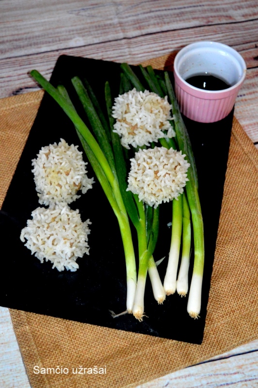 Ryžius pamerkiame šaltame vandenyje porai valandų. Sudedame į sietelį ir leidžiame nuvarvėti.