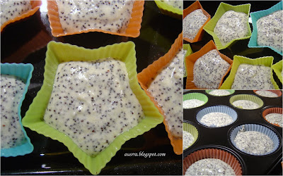 Tešlą iškart sukrečiame į silikonines ar popieriukais išklotas keksiukų ar kitokias formeles (galima kepti didesnėje formoje) ir pašauname į orkaitę. Kepame 15–20 minučių. Kepant labai svarbu nedarinėti orkaitės durelių, kad kepiniai nesukristų.