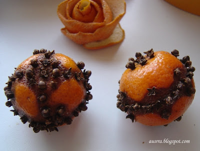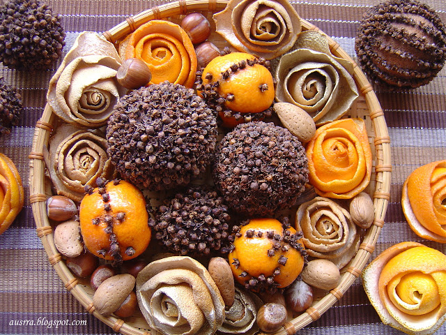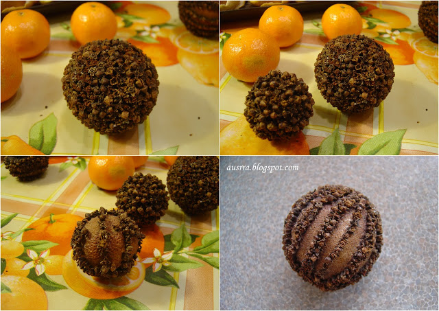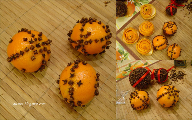 Gvazdikėliais smaigstyti apelsinus ir mandarinus pradėjau prieš penkerius ar septynerius metus. Tai britų sumanymas. Dailiai ir įdomiai atrodo, skaniai kvepia, puikiai tinka dovanoms.
