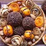 Šiandien tai jau tikrai ne naujiena, bet prieš keletą metų gvazdikėliais prismaigstytas kamuoliukas sukeldavo didelę nuostabą ir susižavėjimą, mat dėl baktericidinių savybių gvazdikėliai „užkonservuoja“ citrusinius vaisius ir šie ne supūva, o sudžiūva – susitraukia, sukietėja, sakyčiau, net suakmenėja ir tokie išlieka keletą metų. Sudžiūvusių kamuoliukų kvapas išblėsta, jais galima baidyti kandis spintose. Aš tokių turiu jau visą kolekciją – nuo praeitų, užpraeitų ir dar ankstesnių Kalėdų.