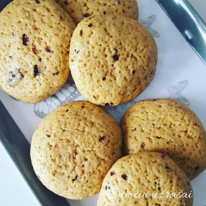 Formuojame graikinio riešuto dydžio rutuliukus ir dedame į skardą.