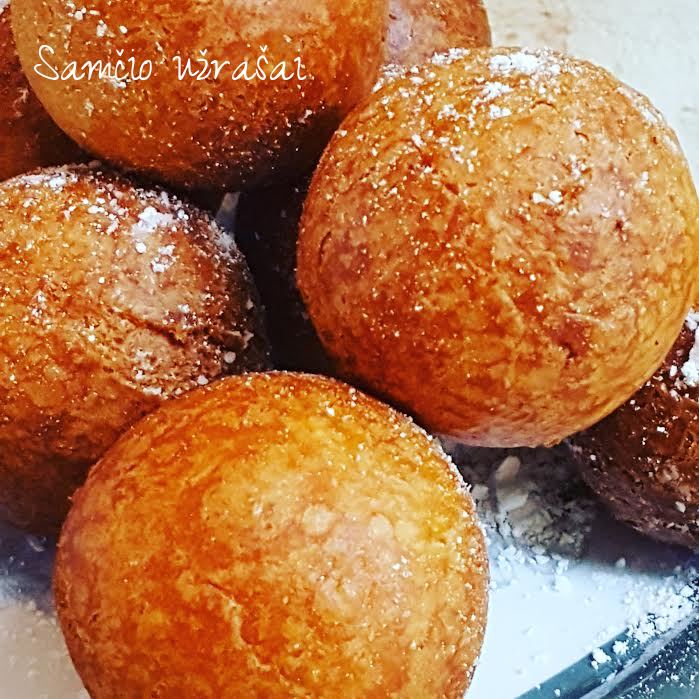 Puode įkaitiname aliejų, vandeniu sudrėkintomis rankomis formuojame graikinio riešuto dydžio spurgytes ir verdame aliejuje, kol gražiai apskrunda.