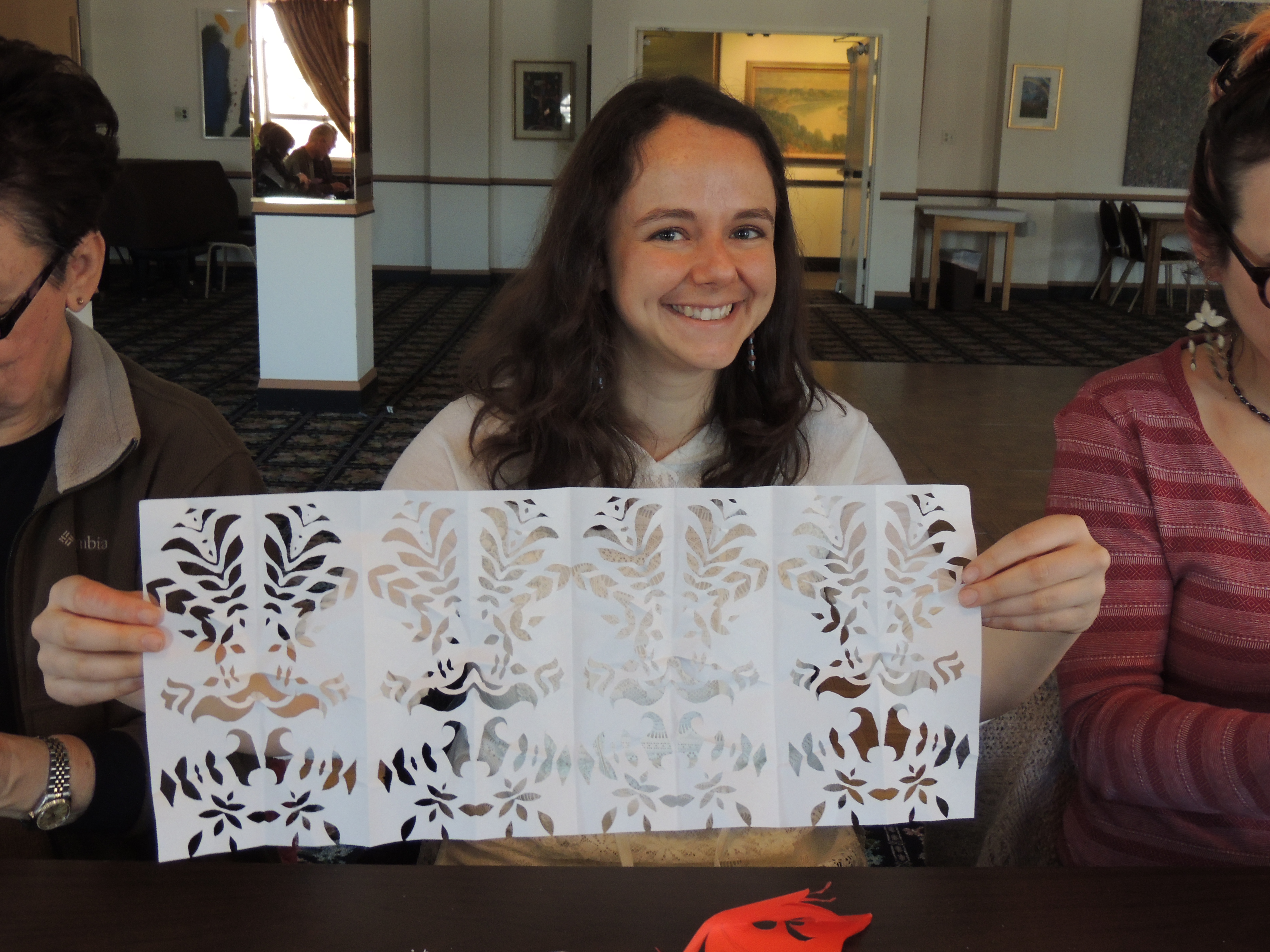 Muziejuje susirinkę amerikiečiai mokėsi iškarpyti užuolaidėlę ir žirklėmis kiauraraščiu, tarsi nėriniais išmarginti popierinio drugelio sparnus. Įdomu, kad tarp susirinkusių mokinių buvo ir vyrų, kurie paėmę žirklutes sėkmingai atliko užsiėmimo vadovės užduotį. Viena iš užsiėmimo dalyvių, amerikietė pradinukų mokytoja nusprendė, kad lietuviškų karpinių būtinai pamokys ir savo mažuosius mokinukus.