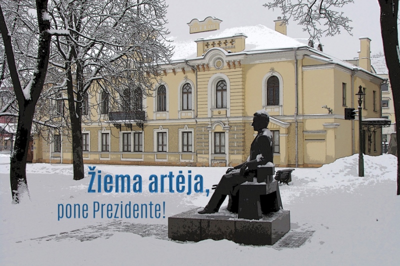 Kalėdiniame Istorinės Prezidentūros sodo įžiebimo renginyje „Žiema artėja, pone Prezidente!“ atgijęs K. Grinius išgyvens džiugias švenčių laukimo akimirkas, dramatišką politinį perversmą ir netikėtai puikų asmeninio gyvenimo posūkį. Įtempto siužeto istoriją pasakos aktorius Edvinas Vadoklis, J. Gruodžio muzikos konservatorijos studentai ir ugnies atlikėjų trupė „Ugnies valdovai“.