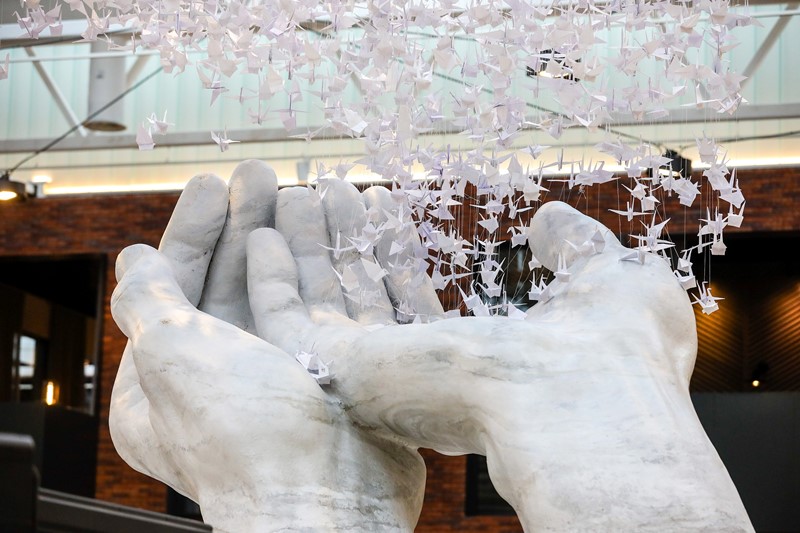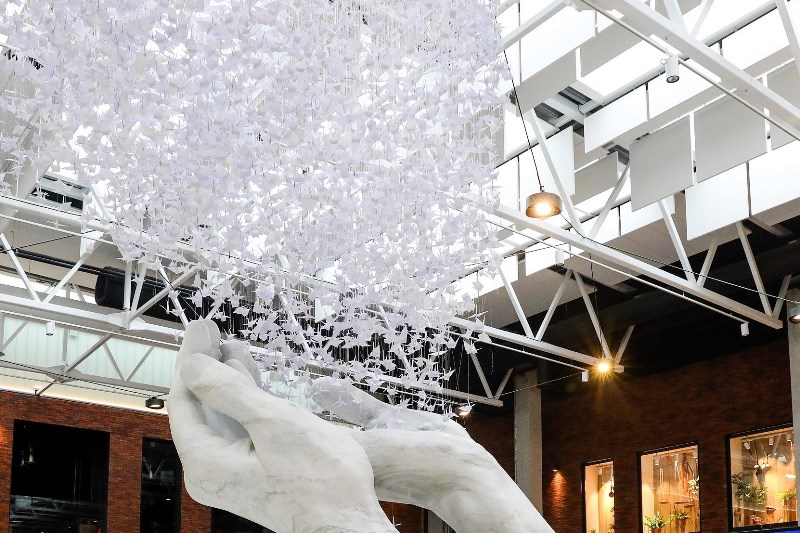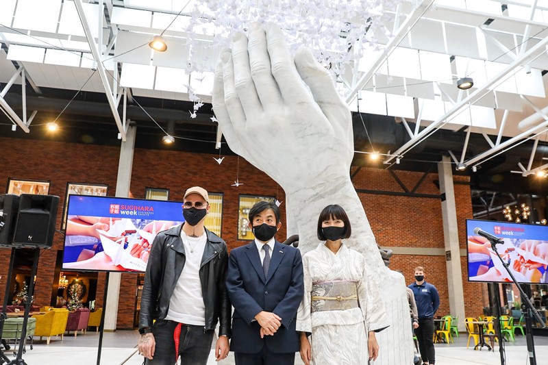 Pirmadienį prasidėjusios Sugiharos savaitės, kuri skirta įamžinti japonų diplomato Čiunės Sugiharos atminimui, proga Kauno „Akropolyje“ pristatyta įspūdinga meninė instaliacija. Ją kūrė dizaineris Robertas Kalinkinas. Meninis sprendimas – du praverti delnai, iš kurių kyla net 10 tūkstančių popierinių gervių, – buvo įgyvendintas kartu su skulptoriumi Vytautu Viržbicku.