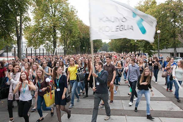 Rugsėjo 24 dienos pavakarę kauniečius nustebino netikėtai miesto centre susibūrusi milžiniška jaunų žmonių minia, apsiginklavusi pripučiamomis sirgalių lazdomis ir garso aparatūra. „Ne, ne, mes čia ne dėl krepšinio, mes – Kauno kolegijos studentai“, – paaiškino užkalbinti jaunuoliai. Pasirodo, tokiu būdu Kauno kolegijos studentija nusprendė paminėti aukštosios mokyklos 15-ąjį gimtadienį.