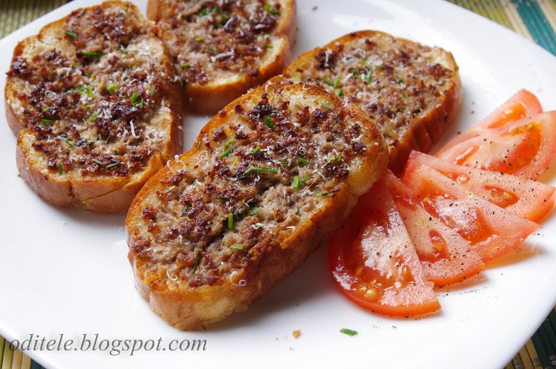 Imkite batono riekelę ir užtepkite nestorą sluoksnį faršo.