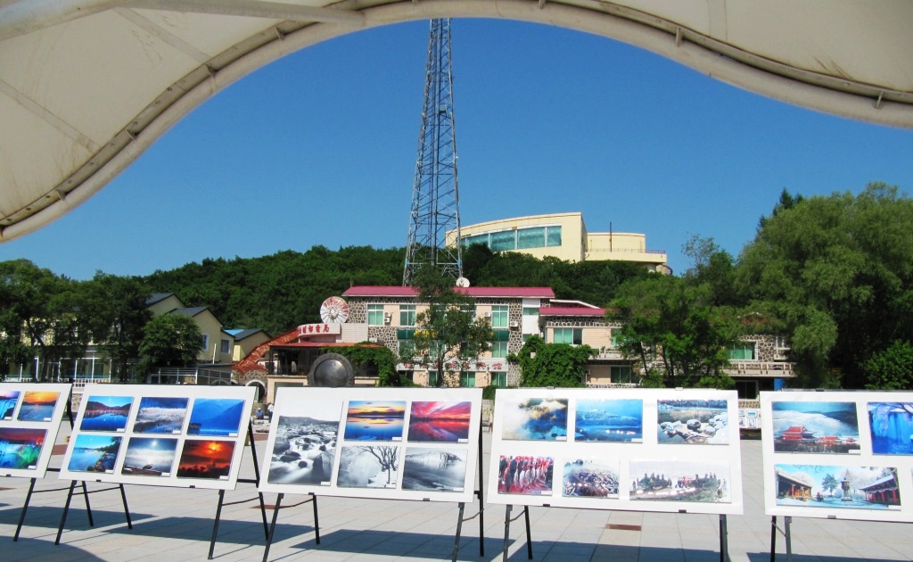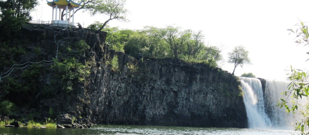 Šalia – žalių autobusėlių stotelė. Vežėjai laukia turistų ir žada parodyti dar puikesnę ežero vietą – Diaoshuilou krioklį, kuris yra trečias pagal aukštį Kinijoje (40 m aukščio) ir kuris, kaip ir Jingpo ežeras, susiformavo prieš 10 000 metų po ugnikalnio išsiveržimo. Pastarojo išspjauta lava užblokavo dalį Mudandziango upės, ši pavirto ežeru, o jos kraštas ėmė kristi žemyn kriokliu.