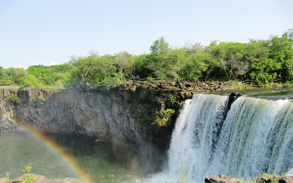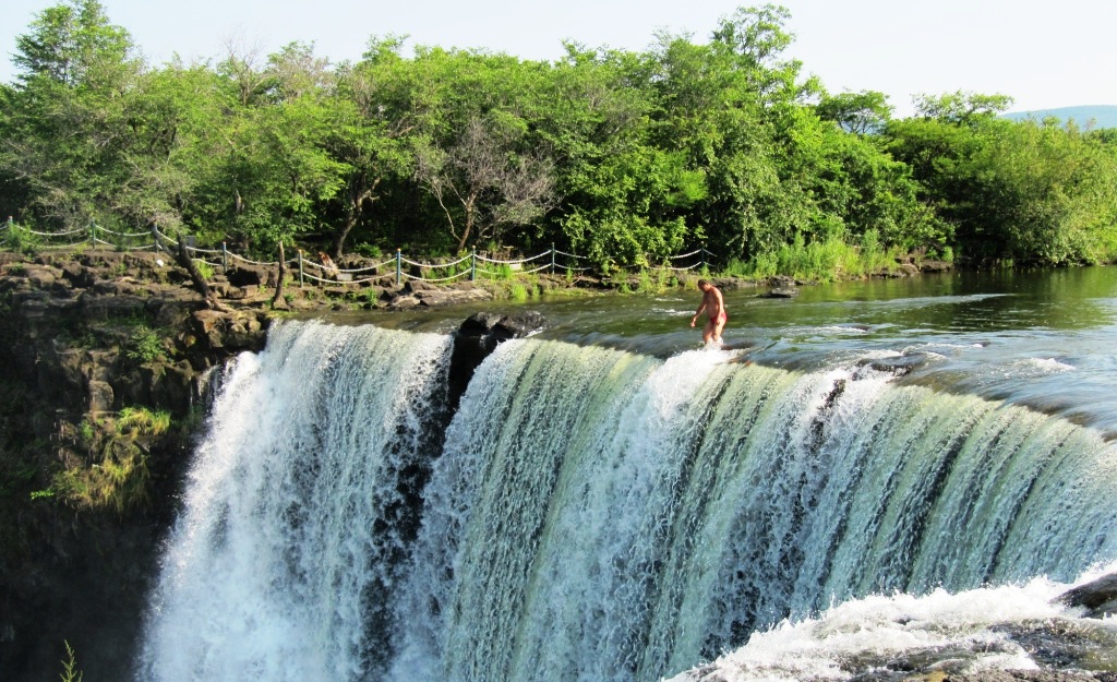 Taigi, nieko nelaukę, sėdame į žalią autobusiuką ir riedame kelis kilometrus krioklio link. Štai dar kelios akimirkos, ir išvystame kvapą gniaužiantį reginį – iš pažiūros tykus vanduo staiga ima kristi žemyn galingu kriokliu. Pasigirsta ošimas, gaudimas, vandens kritimas į uolėtą dugną.