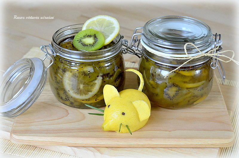 Kivius nulupkite, supjaustykite griežinėliais ir sudėkite į puodą su citrinomis, suberkite likusį cukrų ir supilkite citrinos sultis, užvirinkite. Perpilkite į keraminį ar stiklinį indą ir palikite per naktį pastovėti kambario temperatūroje.