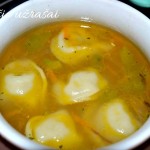 Užviriname vandenį, įdedame sultinio kubelį, leidžiame ištirpti. Sudedame koldūnus. Verdame juos taip, kaip parašyta ant jų pakelio.
