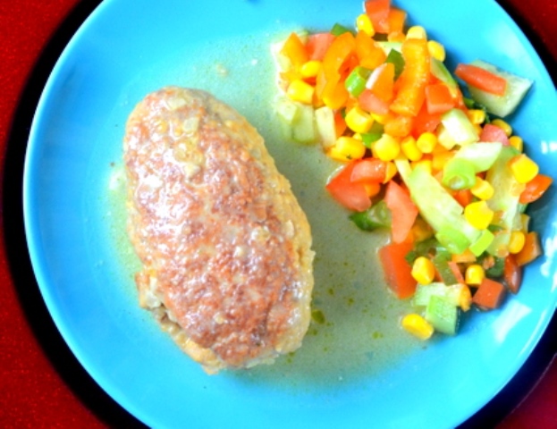Labai skanu su bulvių koše, bet mes valgėme su daržovių salotomis.