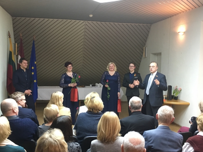Lietuvos ambasadoje Rygoje 28-ųjų Lietuvos nepriklausomybės atkūrimo metinių proga susirinkę lietuvių bendruomenės atstovai ir Lietuvos bičiuliai latviai klausėsi Rygos lietuvių bendruomenės kvarteto „Labirintai“ atliekamų lietuviškų ir latviškų dainų, poezijos ištraukų abiem kalbomis. Ambasados patalpose svečiai galėjo apžiūrėti ambasados darbuotojos Ramunės Kliukaitės tapybos darbų parodą „Prakalbink savo žaismingumą“.