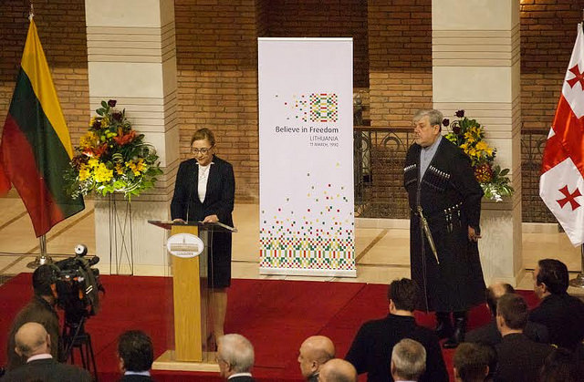 Kartu pasidžiaugti Lietuvos laisvės metais kovo 11 dieną istoriniuose Tbilisio miesto tarybos rūmuose Lietuvos ambasados kvietimu susirinko daugiau nei trys šimtai svečių. Renginio metu atidaryta simbolinių ES valstybių narių vėliavų paroda „Nepriklausomos istorijos“. Lietuvą sveikino Gruzijos parlamento pirmininkas, vicepremjeras, užsienio reikalų, euroatlantinės integracijos, teisingumo, vidaus reikalų ministrai, Tbilisio miesto meras bei tarybos pirmininkas, parlamentarai, kariškiai, menininkai, verslininkai, akademinės bendruomenės atstovai, Gruzijos lietuviai.