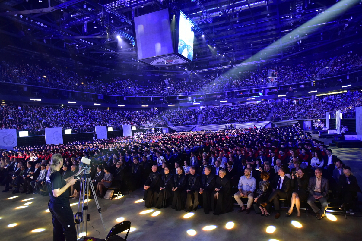 Lietuvos darbo rinka pasipildė daugiau nei 2 tūkstančiais jaunų specialistų – šį penktadienį diplomus atsiėmė Kauno technologijos universiteto (KTU) bakalaurai, magistrai ir mokslo daktarai. Į įspūdingą diplomų teikimo šventę Kauno „Žalgirio“ arenoje susirinko per 10 tūkst. dalyvių – absolventų, jų artimųjų, akademinės bendruomenės narių bei garbingų svečių.