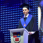 „Esame lyderiai, kurie prisiima atsakomybę už šalies ateitį“, – drąsiai teigė L. Kijauskas. Angų kalba jis pasveikino ir šiandien universitetą baigiančius tarptautinius studentus.