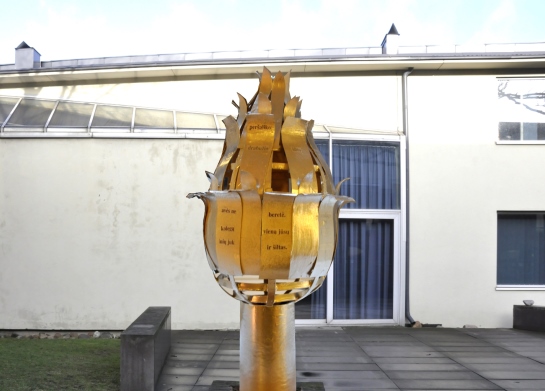 Bet kalba – gyvas organizmas, vieni žodžiai grimzta į užmarštį, kiti gimsta. Dabar kuriame kalbos paminklo tęsinį, įprasminantį naujažodžius, kurie bus išgraviruoti pumpuro, kaip naujos gyvybės užuomazgos, skulptūroje iš nerūdijančio plieno. Skulptūros autorius − dailininkas Romas Klimavičius.