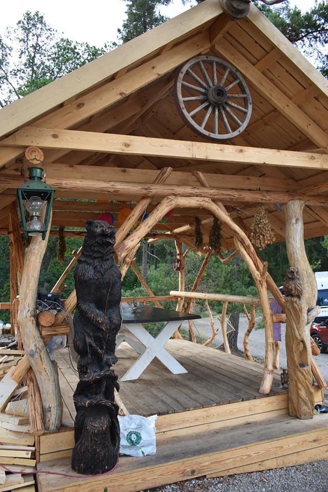 Vadovaudamasis minėta taisykle, Linas pastatė pirtį, primenančią senovinę pilį. Bendruomenės aplinką puošia liaudies meno simboliai: Tomo Baravyko sukurti medžio drožiniai „Kuršis žvejas“ bei „Miško siela“. Anot kaimelio įkūrėjo, specialus apdailos projektas nebuvo rengiamas, meno kūriniai gimė iš žmonių fantazijų.