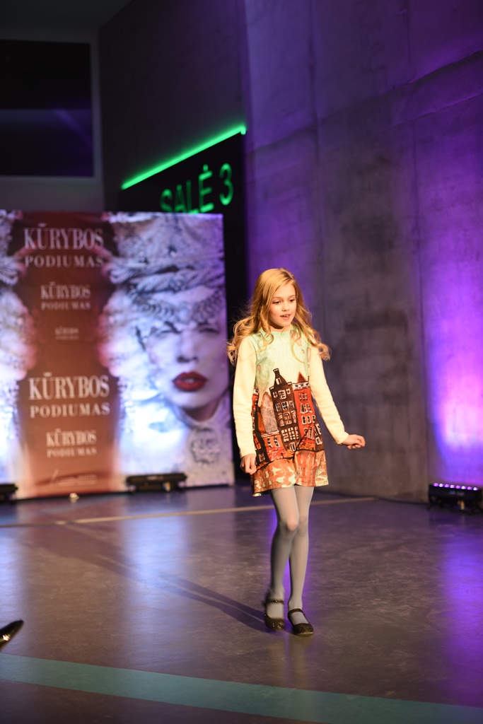 Podiumu pirmąkart žengė ir JurArt’s fotomodeliukų mokyklos vaikai, pasipuošę Dovilės Valukonienės kurtais rūbais.