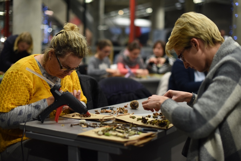 Renginio lankytojos, susižavėjusios kitų kurtais rankdarbiais, abi dienas turėjo progą pačios pasijusti kūrėjomis: pirmiausia su „ARTmanijos“ vadove Gintare Drungiliene, taikydamos nesudėtingas technikas, kūrė akį traukiančias puošybos detales, o sekmadienio popietę leido gamindamos papuošalus (akmeneliai.com) ir kalėdinius vainikus (dovisa.com) bei kalėdines dekoracijas. Įspūdingos šventinės puošmenos dalyvių rankose gimė padedant floristikos specialistei Jolantai Malijonienei.