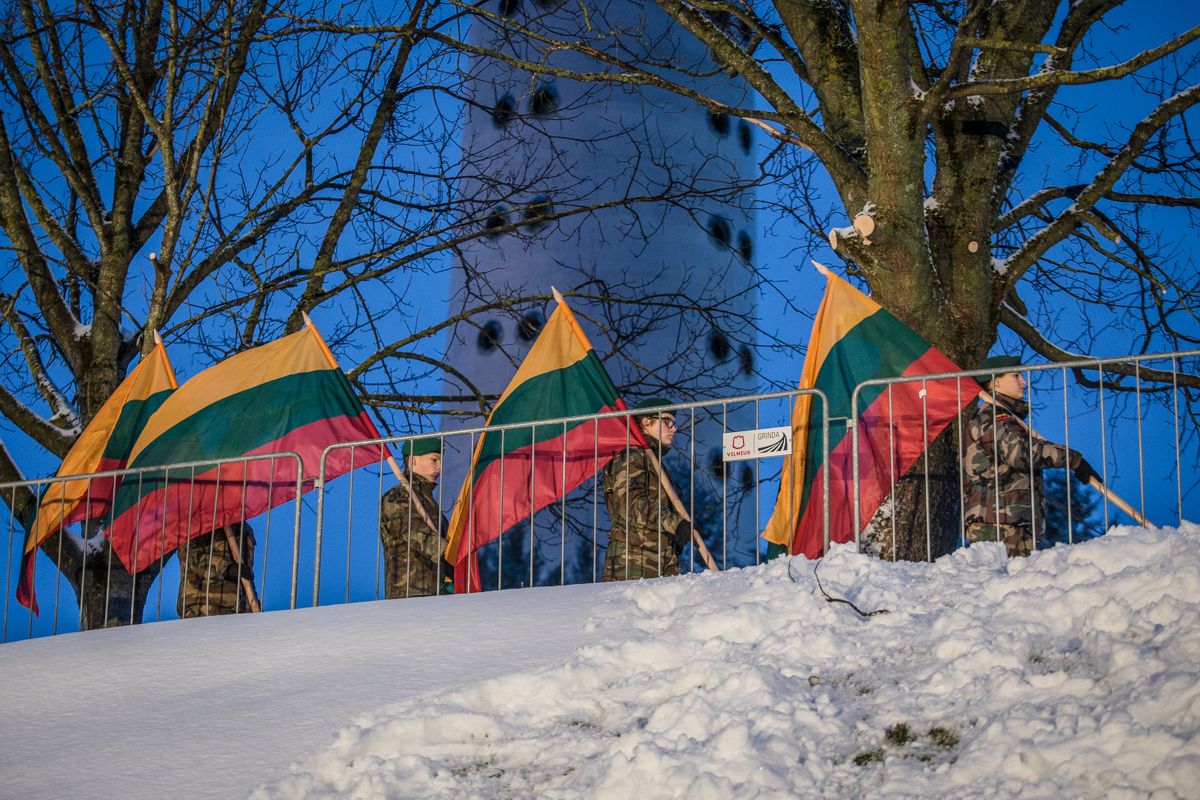 18 val. Atminimo laužų uždegimas prie Lietuvos nacionalinio radijo ir televizijos pastato