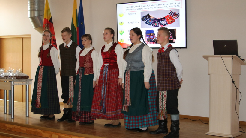 Dėkodamas mokytojoms, ugdančioms vaikų ir jaunuolių tautinę savimonę, meras įteikė dovanų – Lietuvos nacionalinio kultūros centro išleistus kalendorius „Baltų genčių kostiumai I–XIV a.“. Jame pavaizduota baltų genčių – kuršių, sėlių, jotvingių, žemaičių, aukštaičių, lietuvių, žiemgalių – kostiumų kolekcija, kuri išsamiai pristato geležies amžiaus, romėniškosios, vikingų bei viduramžių epochos nešiosenos ir puošybos tradicijas, atkurta remiantis archeologiniais tyrimais, istoriniais duomenimis bei Europos ikonografija. „Neabejoju, jog ruošdamiesi šioms varžytuvėms daug sužinojote apie tautinius mūsų rūbus, tad linkiu domėtis ir plėsti žinias apie istorinį kostiumą“, – sakė meras A. Margelis.