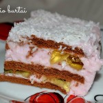 Ant viršaus užberiame kokosų drožlių ir dedame į šaldytuvą stingti.