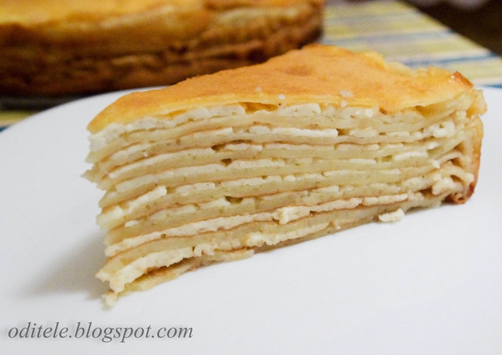 Kiaušinius išplakite su cukrumi ir druska. Tada supilkite pieną ir vandenį bei išmaišykite. Persijokite miltus kartu su kepimo milteliais ir įmaišykite į tešlą. Supilkite aliejų ar lydytą sviestą ir dar kartelį gerai išmaišykite, kad tešla būtų vientisa.