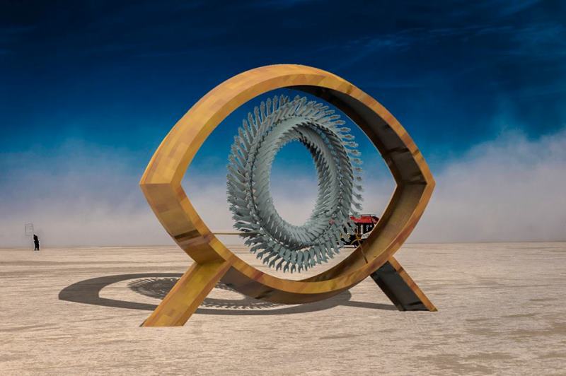 Rugpjūčio pabaigoje lietuvių komanda keliaus iš Vilniaus į San Fransiską, o tada – į Juodosios uolos dykumą. Nuvykusi į vietą komanda imsis stovyklos įrengimo ir instaliacijos statymo darbų. Dalis instaliacijos – metalinė akies vyzdžio dalis – jau surinkta ir išplukdyta į JAV birželio pradžioje. Likusią dalį – medinį rėmą ir 300 besisukančių rankų – komanda surinks dykumoje.