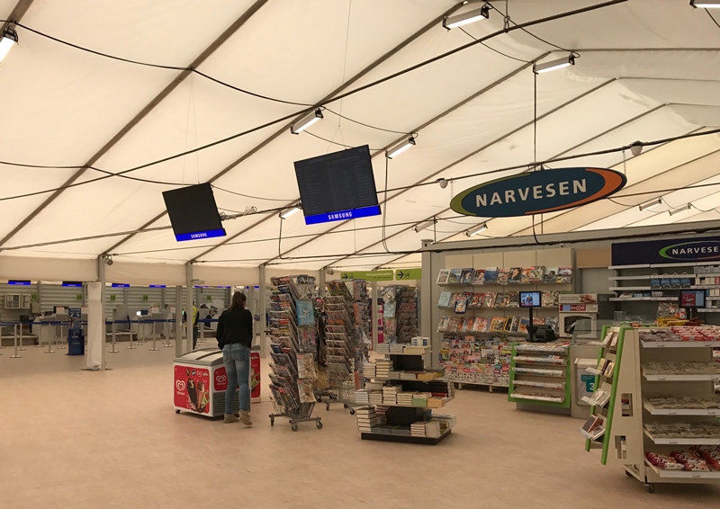 „Šalia pagrindinio trijų aukštų Kauno oro uosto terminalo, laikinai pavadinto terminalu B, iškilo dvi laikinos vieno aukšto konstrukcijos. Tai skrydžiams į Šengeno zonos šalis skirtas terminalas A ir keleiviams atvykti paruoštas terminalas C. Laikinajame išvykimo terminale A įsikūrė kavinės bei parduotuvės ir veiks iš Vilniaus oro uosto persikėlęs Verslo klubas“, – aiškina D. Voveris.