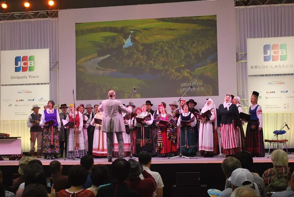 Artėjant Lietuvos atkūrimo šimtmečiui, Japonijoje – vienoje didžiausių pasaulyje tarptautinėje turizmo parodoje „Jata“ – pristatytas įspūdingiausias kitąmet mūsų šalyje vyksiantis renginys – Lietuvos dainų šventė „Vardan tos…“. Tautiniais kostiumais žavėjęs ir lietuviškomis dainomis užbūręs japonų publiką, Lietuvai atstovaujantis Jungtinis Lietuvos kultūros centrų vadovų choras kvietė visus atvykti į mūsų šalį ir išvysti vieną didžiausių šalies kultūros įvykių, garsinančių jos vardą pasaulyje.