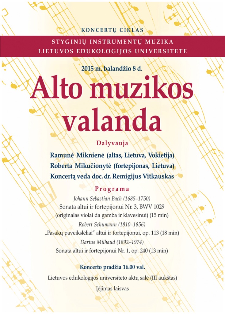 2015 m. balandžio 8 d. 16.00 val. Lietuvos edukologijos universiteto (LEU) aktų salėje (Studentų g. 39, III aukštas) vyks styginių instrumentų muzikos koncertas „Alto muzikos valanda“. Koncerto vedėjas – LEU doc. dr. Remigijus Vitkauskas.