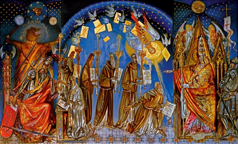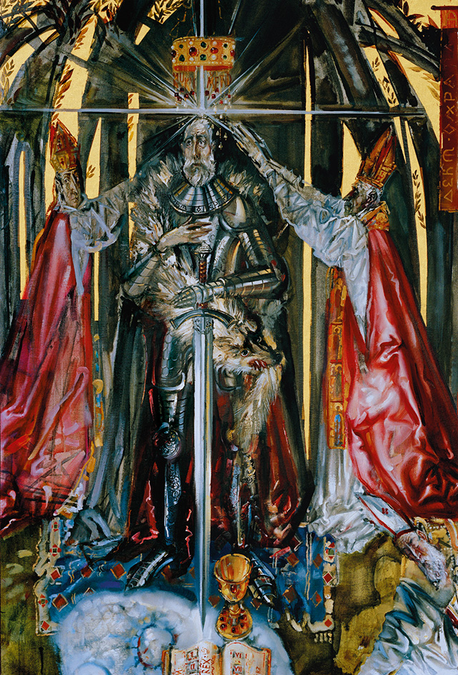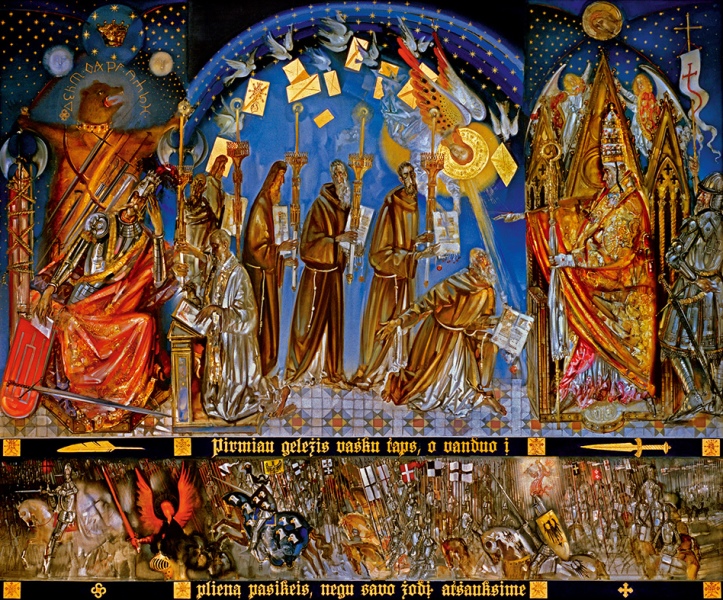 Paveikslo „Mindaugo karūnavimas. Lietuvos krikštas“ fragmentas