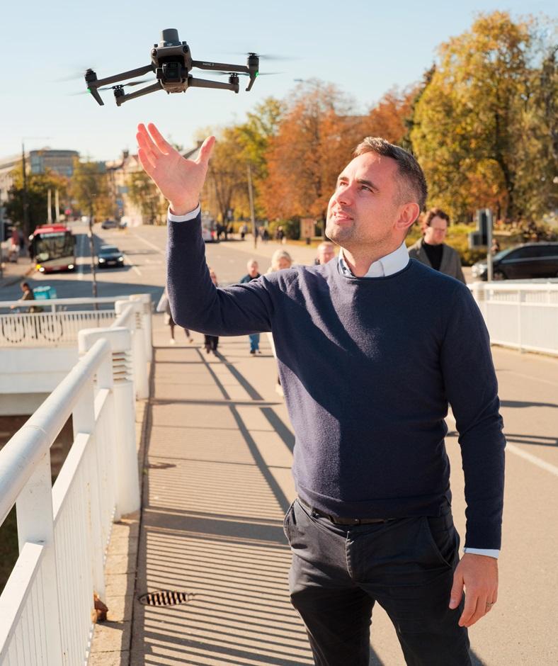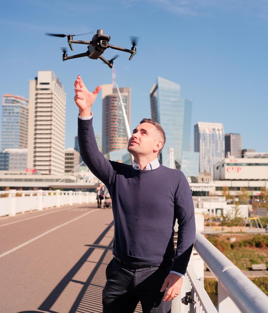 Akimirkai įsivaizduokite miestą, kuriame šalia įprastų tarnybų – ugniagesių, policijos, atliekų vežėjų, eismo srautų reguliavimo specialistų – dieną naktį beveik savarankiškai dirba pažangių dronų būriai. Jie realiuoju laiku stebi ir analizuoja miesto spūstis – pagal tai koreguojamas šviesoforų darbas. Kiti skubiai vyksta į įsiplieskusio gaisro vietą ir suteikia žmonių gyvybes gelbėjančią informaciją ugniagesiams. Treti visą parą saugo svarbius objektus. Apie tokius miestus jau labai artimoje ateityje svajoja Linas Gelažanskas, kurio įsteigta įmonė kuria pažangias autonominių dronų technologijas.