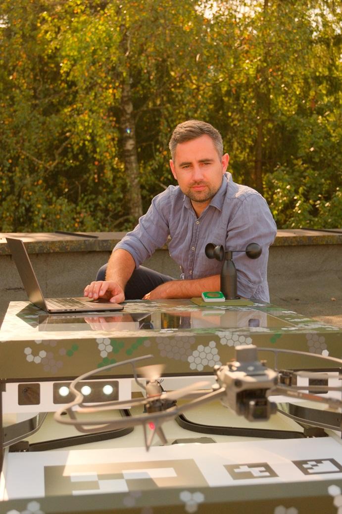 „Siekiame ištobulinti ir rinkai pasiūlyti automatizuotas dronų bazines stotis. Ką tai reiškia? Dabar dronų veikimą suprantame kaip procesą, kai pilotas laiko pultą rankoje, o jo valdomas dronas skrenda kažkur priešais jį. Mūsų tikslas – įdiegti droną į jo stotį – „garažą“, kuriame palaikoma tinkama temperatūra, užtikrinama apsauga nuo lietaus bei sniego ir pakraunamos baterijos, todėl automatizuoti dronai gali atlikti jiems priskirtas funkcijas savarankiškai“, – pasakoja pašnekovas.