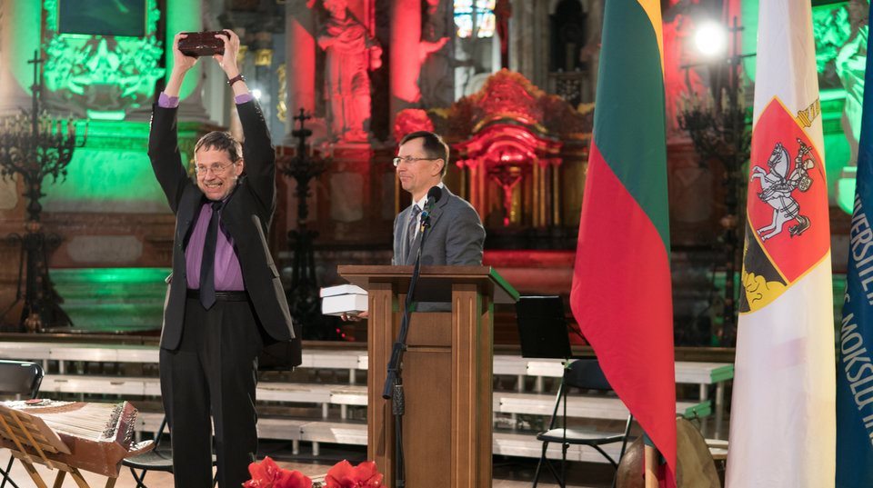 Dėkodamas Vilniaus universiteto Tarptautinių santykių ir politikos mokslų institutui Liudas Mažylis prisiminė savo kelią universitete: „Šioje bažnyčioje atsiėmiau savo chemijos mokslų daktaro diplomą, vėliau apsigyniau habilitaciją vadybos srityje, dabar dėstau politologiją ir galiausiai esu įvertintas politikos mokslų atstovų“, – ir toliau juokaudamas džiaugėsi profesorius Liudas Mažylis.