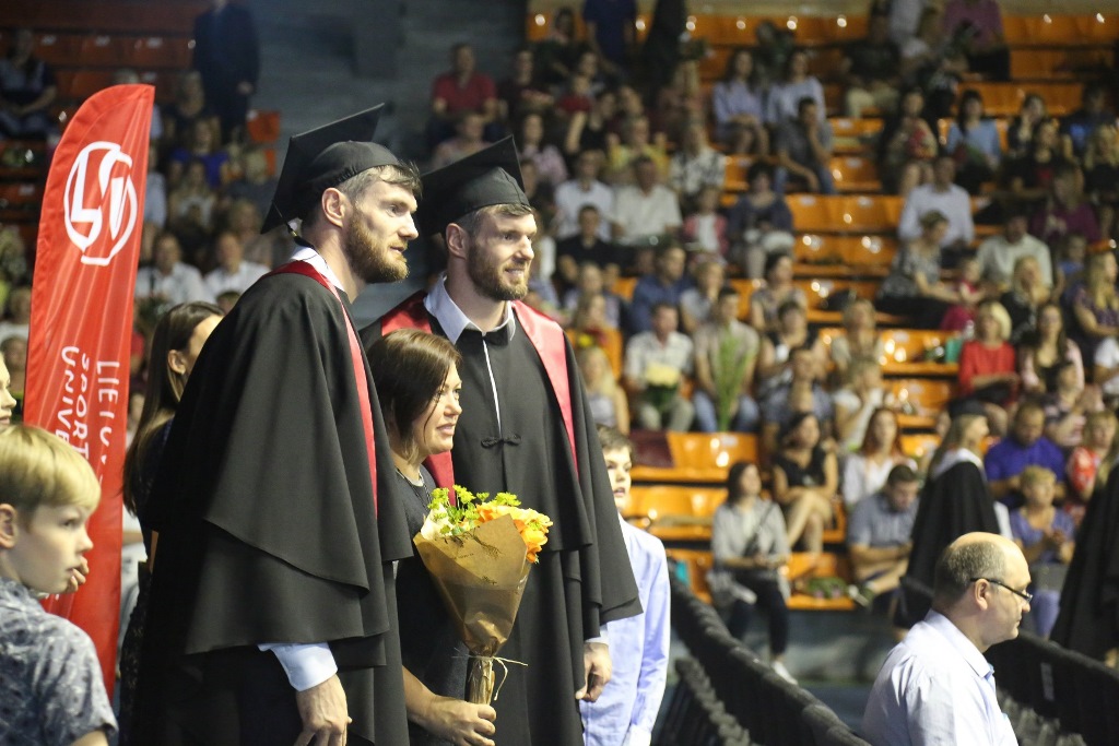 Šiemet LSU Treniravimo sistemų studijų programą baigė garsūs sportininkai: pasaulio disko metimo čempionas Andrius Gudžius, žymūs Lietuvos krepšininkai broliai Darjušas ir Kšyštofas Lavrinovičiai. Jiems įteikti sporto bakalauro diplomai. Absolventus sveikino laikinoji LSU rektorė docentė daktarė Diana Rėklaitienė ir LSU Tarybos pirmininkas Arūnas Kučikas, o šventę papuošė ir Kineziterapijos studijų programos absolventas Vakaris Mičiūnas, pasipiršdamas savo mylimajai – irgi ką tik kineziterapeutės diplomą gavusiai Simonai Radzevičiūtei.