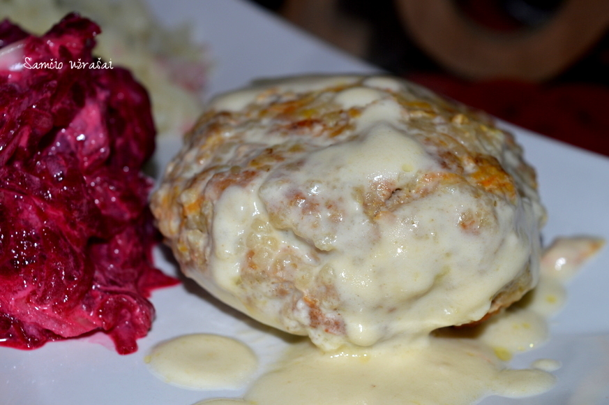 Po valandos formuokite maltinukus ir kepkite įkaitintame aliejuje iš abiejų pusių.