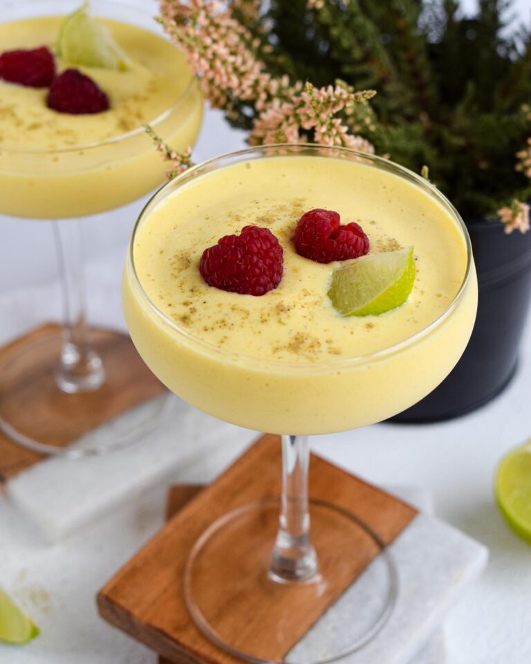 Gaminimo eiga: mango, jogurtą, augalinį pieną, cukrų, ciberžolę ir kardamoną sudedame į maisto smulkintuvą ir sutriname iki vientisos konsistencijos. Patiekiame stiklinėse arba taurėse, puošiame vaisiais, uogomis.
