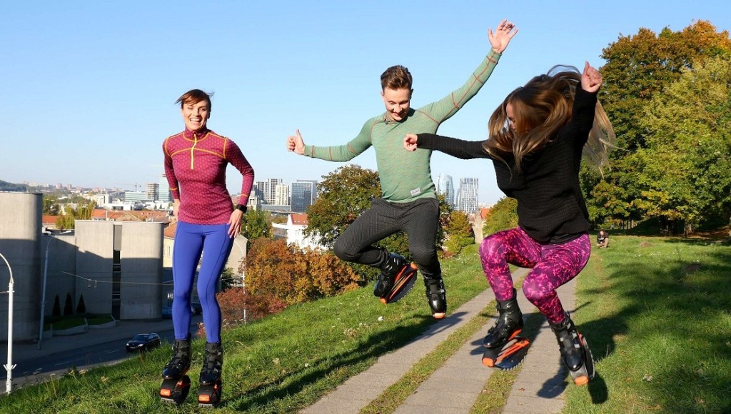 Visada plačiai besišypsantis muzikantas neatsispyrė Vlados pasiūlytai avantiūrai sudeginti kalorijas šuoliuojant su specialiais batais. Neįprastoje treniruotėje sportavęs akordeonistas juokavo, kad su tokia avalyne kengūros žingsniais galėtų kur kas greičiau lėkti iš oro uostų į koncertų sales ir atgal.