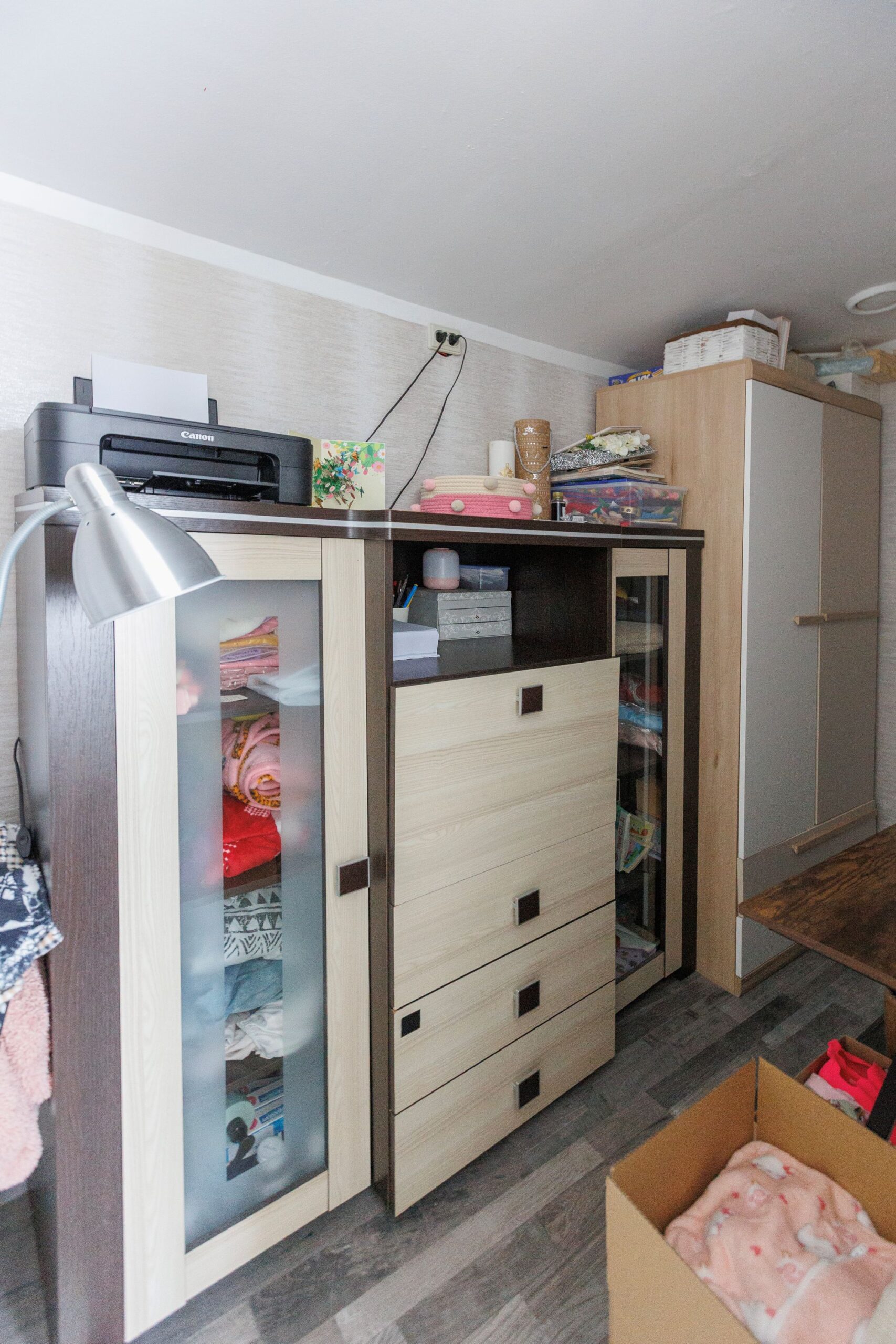 Vienas iš svarbiausių pokyčių kambaryje – televizoriaus perkėlimas į patogesnę vietą priešais lovą. Pasak interjero dizainerės A. Šiaudvytienės, toks sprendimas išsprendė keletą rūpesčių: ne tik nebereikia pasukti galvos norint pamatyti ekraną, bet taip pat spinta buvo perkelta į patogesnę vietą naudojimui.