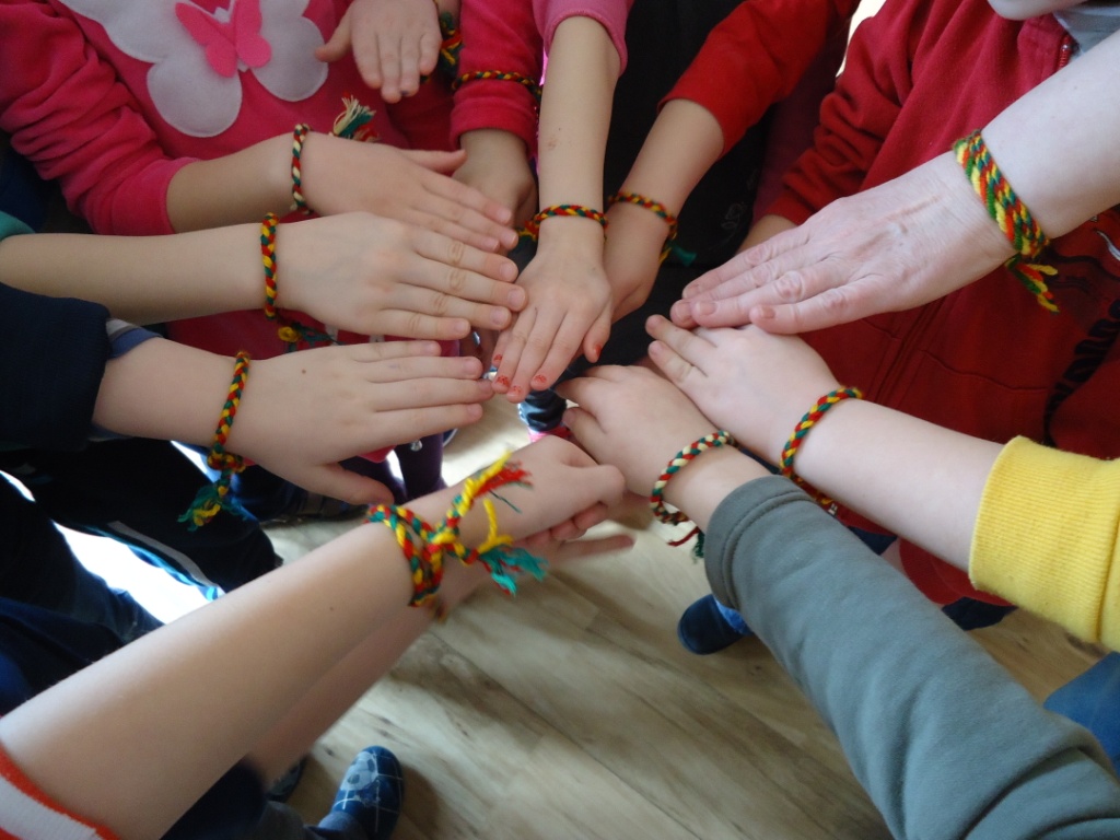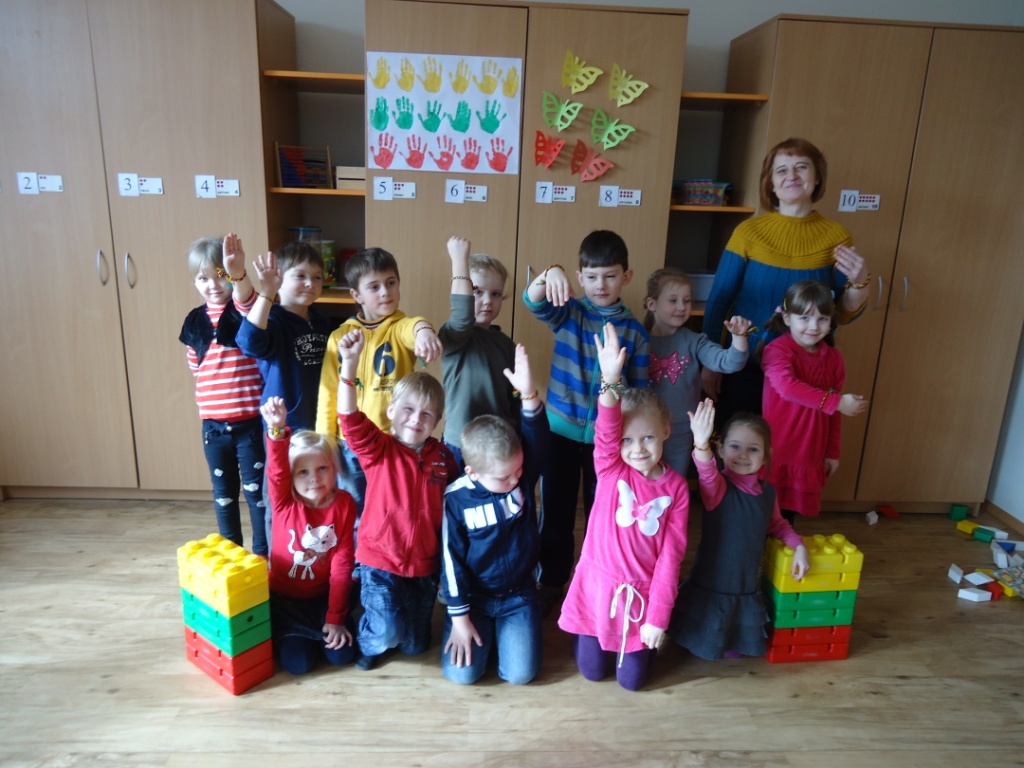 Trispalvių apyrankių pynimas „Lietuvai ir man“, galvojant apie ryšį su tuo, kas brangu – draugais, bendruomene, tėvyne, – subūrė kolektyvo daugumą nupinti trispalvių apyrankių ne tik sau, bet ir dovanoti Lietuvai. Trispalves apyrankes noriai ir kantriai pynė priešmokyklinės grupės „Voveriukai“ vaikučiai. Šešiamečių grupės „Riešutėliai“ vaikai vakarojo kartu su mamytėmis ir pynė trispalves apyrankes sau ir Lietuvos nepriklausomybės 25-mečiui pagerbti. Malonu, kad mūsų trispalvių šimtinė puošia specialiai šiai akcijai sukurtą Gediminaičių stulpų konstrukciją.