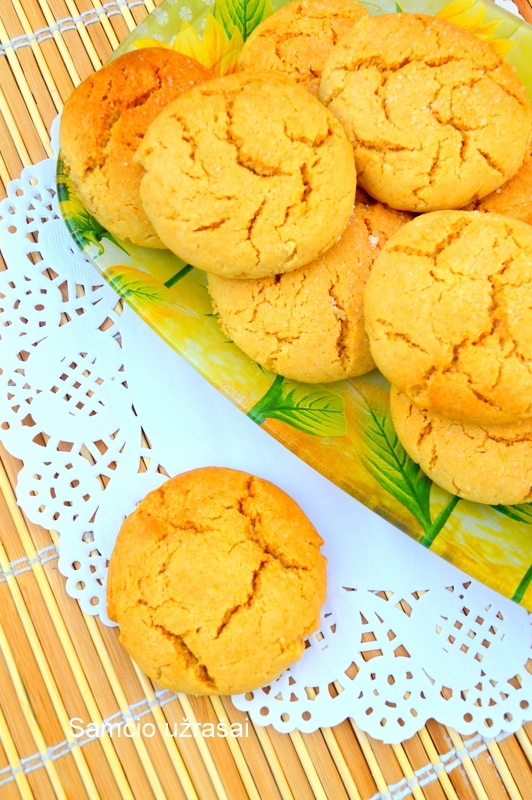 Iš tešlos formuokite graikinio riešuto dydžio sausainukus ir pirštais truputį paspauskite. Jei norite, ant viršaus galite užberti truputį cukraus ar cinamono.